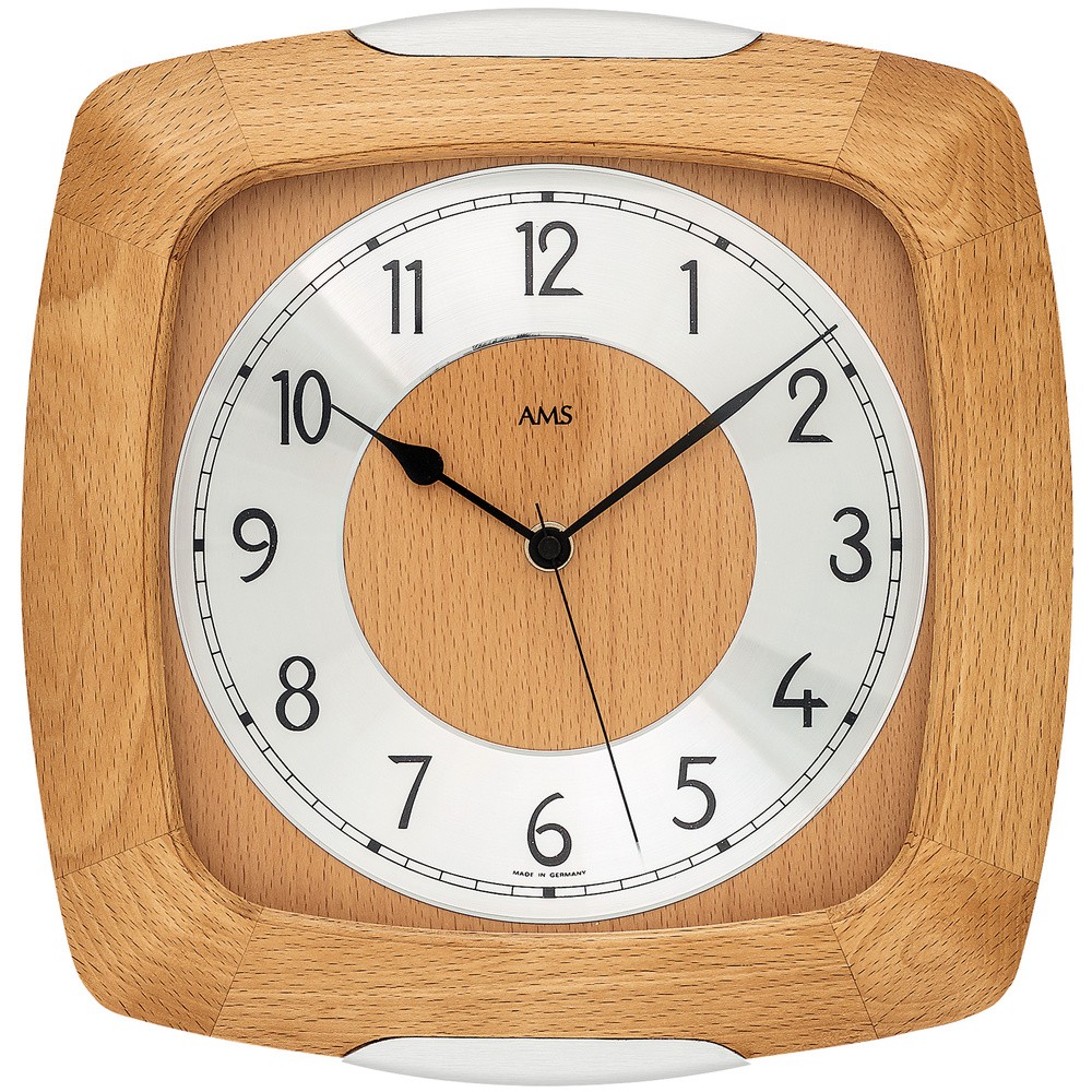 AMS 5804/18 Wanduhr Funk Funkwanduhr analog Holz Buche massiv mit Glas