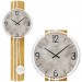 Quarz-Wanduhr mit Pendel, Holzrückwand in Wildeiche-Optik, Zifferblatt in in silberfarbener Antik-Optik hinter bedrucktem Mineralglas, Frontreif Aluminium, Strichskala, arabische Zahlen und Zeiger schwarz