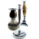 Rasier-Set, 3-teilig, verchromt mit Galalith kombiniert, Rasierer Mach3-Klinge, Pinsel 100% Dachs-Silberspitze