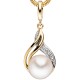 Anhänger 585/- Gelbgold, teilrhodiniert, mit einer Süßwasser-Zuchtperle und einem Diamant-Brillanten 0,005 ct., W/P1 wesselton (weiß), 1. Piqué‚ Feinbearbeitung gut, Ø der Perle ca. 8 - 8,5mm, Höhe ca. 18,9mm, Breite ca. 10,4mm, Tiefe ca. 2,6mm, Innenmaße der Öse ca. 4,7mm x 2,9mm, Gewicht ca. 1,8g