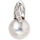Anhänger ohne Kette 585/- Weißgold mit einer Süßwasser-Zuchtperle und 3 Diamant-Brillanten, 0,01 ct., W/SI wesselton (weiß), Feinbearbeitung gut, Höhe ca. 18mm, Breite ca. 10,2mm, Tiefe ca. 7,6mm, Innenmaße der Öse ca. 5,3mm x 3,2mm, Gewicht ca. 2,0g
