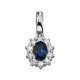 Anhänger ohne Kette 585/- Weißgold mit einem blauen Safir und 10 Diamant-Brillanten, 0,20 ct., W/P1 wesselton (weiß), 1. Piqué‚ Feinbearbeitung gut, Höhe ca. 10,3mm, Breite ca. 8,6mm, Tiefe ca. 4,9mm, Innenmaße der Öse ca. 4,6mm x 3,1mm, Gewicht ca. 1,2g