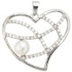 Anhänger Herz, 925/- Sterlingsilber, rhodiniert, 1 Süßwasser-Zuchtperle, mit Zirkonia (ca. 2,2 g) (ohne Kette), Höhe ca. 24mm, Breite ca. 27,3mm, Tiefe ca. 1,2mm