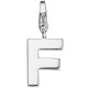 Einhänger / Charm Buchstabe F aus 925/- Sterlingsilber, rhodiniert, mit Karabinerverschluss, Höhe ca. 15,5mm, Breite ca. 9,6mm, Tiefe ca. 2,2mm, Innendurchmesser der Öse ca. 3,1mm