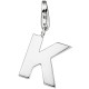 Einhänger / Charm Buchstabe K aus 925/- Sterlingsilber, rhodiniert, mit Karabinerverschluss, Höhe ca. 16mm, Breite ca. 11,6mm, Tiefe ca. 2,2mm, Innendurchmesser der Öse ca. 3,1mm, Gewicht ca. 2,5g