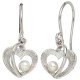 Paar Ohrhaken Herz, 925/- Sterlingsilber, rhodiniert, teileismatt, 2 Süßwasser-Zuchtperlen (ca. 2,7 g), Höhe ca. 24,8mm, Breite ca. 11,2mm