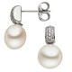 Paar Ohrstecker 333/- Weißgold, mit 2 Süßwasser-Zuchtperlen und 32 Zirkonia, Ø der Perlen ca. 8 - 8,5mm, Höhe ca. 14,7mm, Breite ca. 8,3mm, Gewicht ca. 2,7g