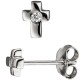 Paar Ohrstecker Kreuz aus 925/- Sterlingsilber, rhodiniert, mit 2 Zirkonia, Höhe ca. 7,2mm, Breite ca. 5,4mm, Gewicht ca. 1,1g