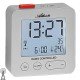 Funk-Wecker, digitale Anzeige, Kunststoffgehäuse silberfarben, 12/24-Stunden Anzeige, Repetition, Obenabsteller, Zifferblattbeleuchtung mit Nachleuchteffekt, Datums-/Temperaturanzeige, ca. 64,7g, Höhe ca. 6,5cm, Breite ca. 6,5cm