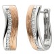 1 Paar Creolen mit Klappmechanik aus 925/- Sterlingsilber, rhodiniert, teilrotvergoldet und teilmattiert, mit Struktur und 22 Zirkonia, Höhe ca. 19,8mm, Breite ca. 6,1mm, Gewicht ca. 5,9g