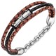 3-reihiges Armband aus schwarzem und braunem Leder mit teilmattiertem Edelstahl kombiniert, mit Magnetverschluss, Länge ca. 21cm, Stärke ca. 14,8mm x 8,1mm, Breite ca. 14,6mm, Gewicht ca. 23,5g
