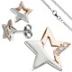 Schmuck-Set, bestehend aus: Anhänger Stern aus 925/-Sterlingsilber, rhodiniert, teilmattiert und teilrotvergoldet, mit Zirkonia, Höhe ca. 15mm, Breite ca. 15,8mm, Tiefe ca. 3,2mm, Innenmaße der Öse ca. 2,4mm x 2mm, Gewicht ca. 1,9g, 1 Paar Ohrstecker Stern aus 925/-Sterlingsilber, rhodiniert, teilmattiert und teilrotvergoldet, mit Zirkonia, Höhe ca. 9,2mm, Breite ca. 10mm, Gewicht ca. 1,4g, Panzerkette aus 925/-Sterlingsilber, rhodiniert, mit Karabinerverschluss, Länge ca. 38cm, Kettenstärke ca. 1,7mm x 0,8mm, Gewicht ca. 2,9g