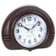 Quarz-Wecker, Gehäusematerial aus nachwachsenden Rohstoffen (biologisch abbaubar) in Holz-Optik nussbaumfarben, Repetition (Weckwiederholung alle 4 Minuten), Lichtfunktion, Punktskala, arabische Zahlen und Zeiger schwarz, schleichende Sekunde (geräuscharm) silberfarben, Höhe ca. 9cm, Breite ca. 10cm, Gewicht ca. 99,5g