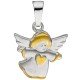 Anhänger Engel 925/- Sterlingsilber, rhodiniert, mattiert und teilvergoldet, Höhe ca. 14mm, Breite ca. 12,6mm, Tiefe ca. 1,6mm, Innenmaße der Öse ca. 4,3mm x 2,2mm, Gewicht ca. 1,4g