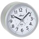 Quarz-Wecker, extra laut, rund, Kunststoffgehäuse silberfarben, Repetition (Weckwiederholung), Lichtfunktion mit Nachleuchteffekt, weißes Zifferblatt, Strichskala, arabische Zahlen und Zeiger schwarz, schleichende Sekunde (geräuscharm) silberfarben, Höhe ca. 9,5cm, Breite ca. 9,5cm, Tiefe ca. 6,5cm, Gewicht ca. 150,7g