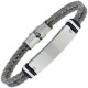 2-reihiges Armband mit Gravurplatte aus grauem geflochtenem Leder mit Edelstahl teilmattiert kombiniert, mit Klappverschluss, Länge ca. 21cm, Breite ca. 8,7mm, Tiefe ca. 5,2mm, Gewicht ca. 12,5g