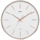 Quarz-Wanduhr, rund, exclusive Designeruhr, Metallrahmen rotgoldfarben, Mineralglas, weißes Zifferblatt, Strichskala, Zeiger und schleichende Sekunde (geräuscharm) rotgoldfarben, Ø ca. 33cm, Tiefe ca. 4cm, Gewicht ca. 826,4g