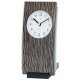 Quarz-Tischuhr, Holzgehäuse mit Wellen-Optik und Aluminium kombiniert, weißes bedrucktes Zifferblatt, Strichskala, arabische Zahlen und Zeiger schwarz, Höhe ca. 19 cm, Breite ca. 10 cm, Tiefe ca. 10 cm, ca. 284,0 g