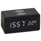 Netz-Tischwecker mit Ladefunktion für Smartphones, mit weißer LED-Anzeige, in 3 Stufen dimmbar, Holzgehäuse schwarz, digital, Zahlen ca. 20mm hoch und ca. 10mm breit, Anzeige von Zeit, Datum und Temperatur, 3 Weckzeiten einstellbar, Energiesparmodus optional (Anzeige schaltet nach 10 Sekunden ab), dauerhafte LED-Anzeige und wireless charging nur bei Netzbetrieb möglich, hierzu ist ein DC5V/2A-Netzteil mit USB-Anschluss notwendig (nicht im Lieferumfang enthalten), Höhe ca. 7cm, Breite ca. 15cm, Tiefe ca. 7,5cm, Gewicht ca. 292,5g