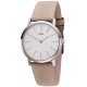 Damenarmbanduhr der Marke JOBO, Quarz-Analog, Gehäuse und Boden Edelstahl, Mineralglas, Strichskala, wassergeschützt bis 3 ATM, Lederband taupe mit Dornschließe, Miyota-Werk, Bandlänge ca. 19,5cm, Ø ca. 33,1mm, Tiefe ca. 6,8mm, Anstoß 18mm, Gewicht ca. 27,0g
