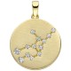 Sternzeichen Jungfrau aus 8 Karat 333/- Gelbgold, mattiert, mit 13 Zirkonia, Ø ca. 16,4mm, Tiefe ca. 1,8mm, Innenmaße der Öse ca. 3,5mm x 2,2mm, Gewicht ca. 4,0g