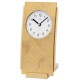 Quarz-Tischuhr, Holzgehäuse in Antik-Optik mit Aluminium messingfarben kombiniert, weißes bedrucktes Zifferblatt, Strichskala, arabische Zahlen und Zeiger schwarz, Höhe ca. 19 cm, Breite ca. 10 cm, Tiefe ca. 10 cm, ca. 247,0 g