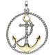 Anhänger Anker aus 925/- Sterlingsilber, rhodiniert und teilvergoldet, mit 13 Zirkonia, Ø ca. 23,5mm, Tiefe ca. 3,1mm, Innenmaße der Öse ca. 3,1mm x 2,6mm, Gewicht ca. 2,4g