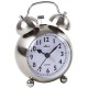 Quarz-Doppelglocken-Wecker mit Glockensignal, Metallgehäuse silberfarben, Retro-Optik, Lichtfunktion, weißes Zifferblatt, Strichskala, arabische Zahlen und Zeiger schwarz, schleichende Sekunde, schwarz, Höhe ca. 13 cm, Breite ca. 9 cm, Tiefe ca. 6 cm, ca. 198,9 g
