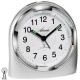Funk-Wecker, Kunststoffgehäuse silberfarben, geräuscharmes Laufwerk, Repetition, Zifferblattbeleuchtung, ansteigendes Wecksignal, weißes Zifferblatt, arabische Zahlen und Zeiger schwarz, Höhe ca. 10 cm, Breite ca. 9,5 cm