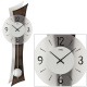 Ihre Frage zu Wanduhr Quarz mit Pendel Holz nussbaum farben mit Aluminium Pendeluhr geschwungen