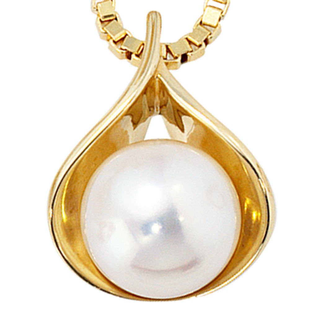 Anhänger 585 Gold Gelbgold 1 Süßwasser Perle PerlenanhängerAnhänger ohne Kette aus 14 Karat (585) Gelbgold mit einer Süßwasser-Zuchtperle