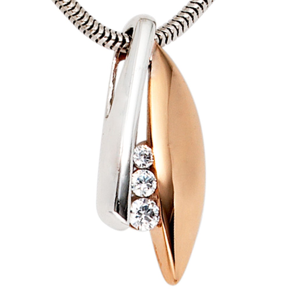 Anhänger 375 Rotgold Weißgold bicolor 3 Zirkonia Goldanhänger