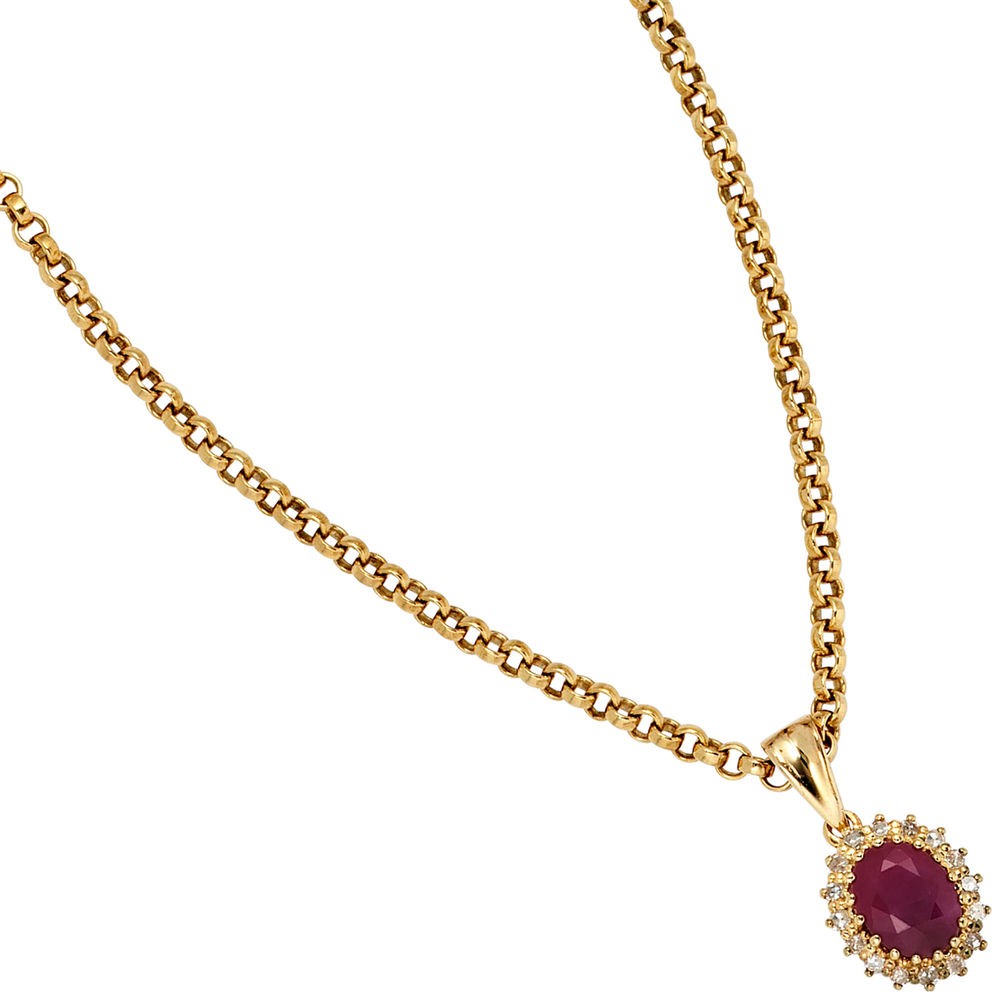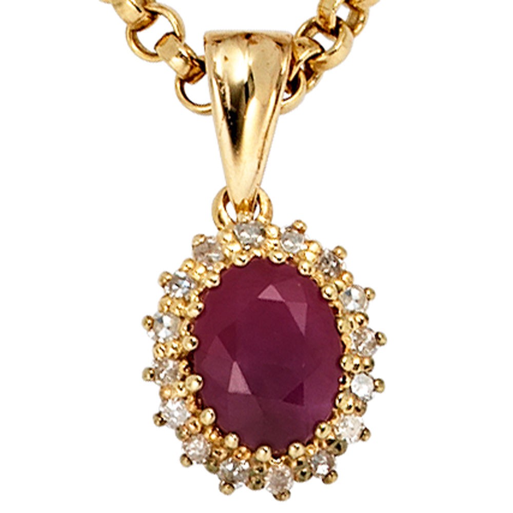 Weiterführende Links zu "Anhänger 585 Gelbgold 16 Diamanten 0,16ct. 1 Rubin rot Goldanhänger"