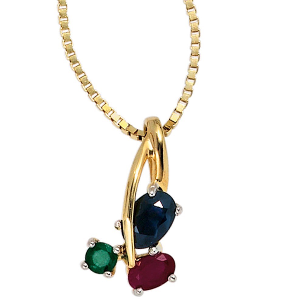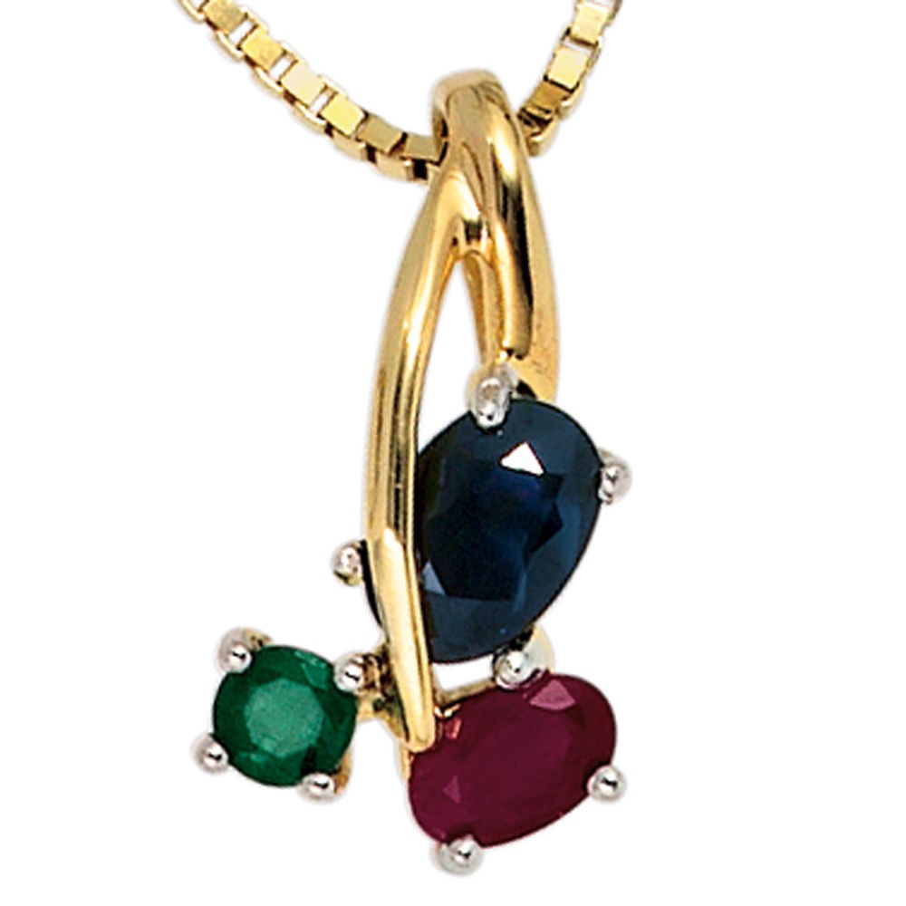 Weiterführende Links zu "Anhänger 585 Gelbgold bicolor 1 Rubin 1 blauer Safir 1 Smaragd"