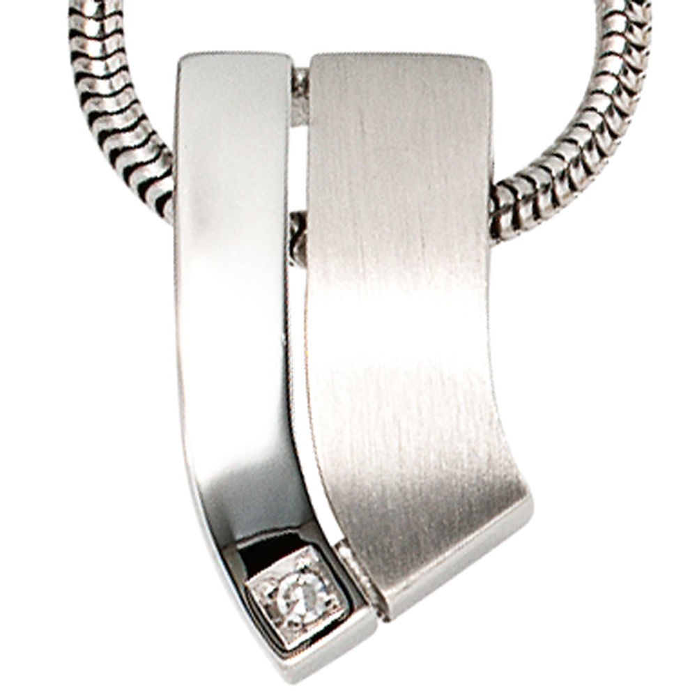 Anhänger 585 Gold Weißgold 1 Diamant 0,01ct. WeißgoldanhängerAnhänger ohne Kette aus 14 Karat (585) Weißgold- teilsatiniert- 1 Diamant- 0.01 ct.- W/SI wesselton (weiß)- SI=(kleine- mit bloßem Auge nicht erkennbare natürliche Einschlüsse)