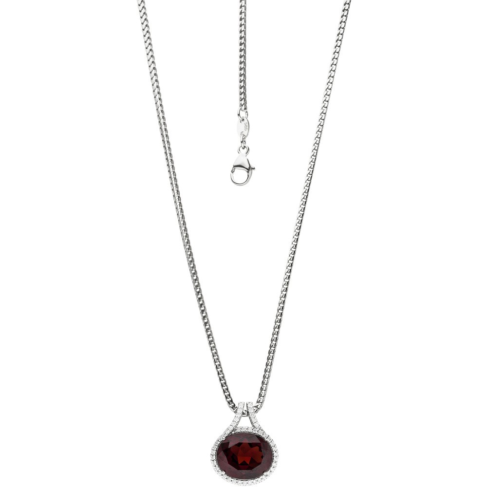 Anhänger aus 14 Karat 585/- Weißgold mit einem Granat und 44 Diamant-Brillanten