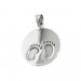 Eine wunderschöne Geschenkidee zur Geburt eines Kindes vom glücklichen Papa für die glückliche Mama! Die kleinen Füßchen, Babytapsen, sind hier reliefartig eingeprägt und zusätzlich eingeschwärzt, während die restliche Oberfläche des Silberanhängers hochglanzpoliert ist. Der runde Anhänger mit dem niedlichen Babymotiv ist für eine kleine Gravur auf der Vorder- und Rückseite gut geeignet und somit ein schönes individuelles Geschenk zur Erinnerung an diesen besonderen Tag, an dem ein neuer Erdenbürger das Licht der Welt erblickte.