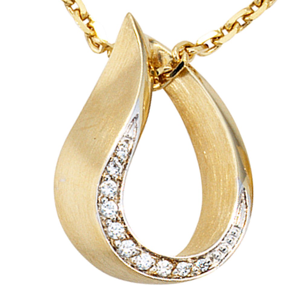 Weiterführende Links zu "Anhänger Tropfen 585 Gelbgold bicolor teilmatt 10 Diamanten Brillanten"