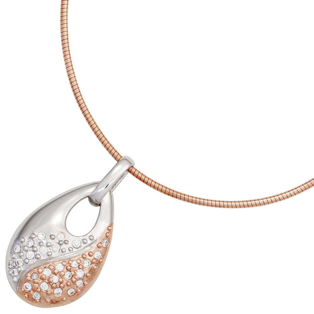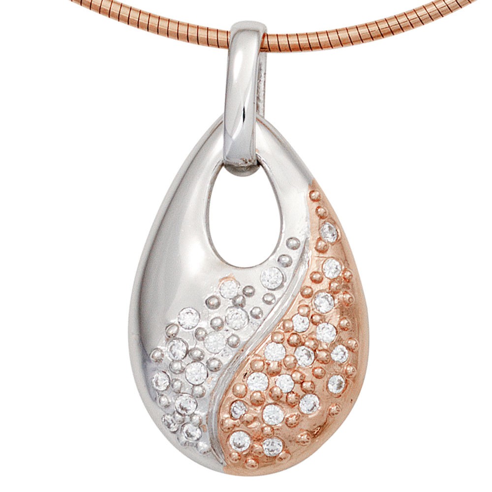 Anhänger Tropfen 925 Sterling Silber bicolor vergoldet mit ZirkoniaAnhänger aus 925 Sterlingsilber- rhodiniert und teilrotvergoldet- mit Zirkonia- ohne Reif