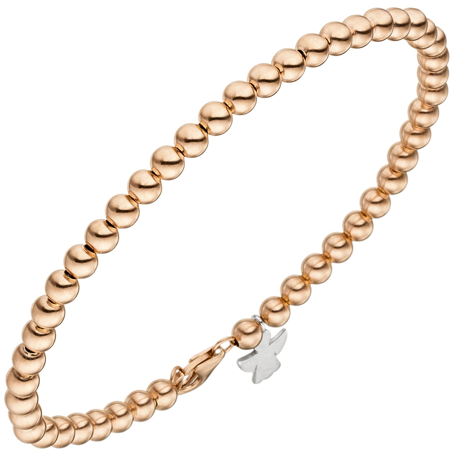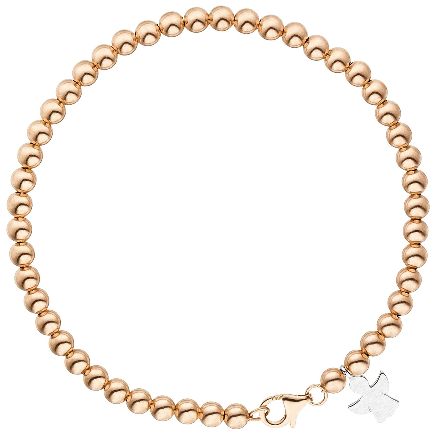 Kugelarmband Engel aus 14 Karat 585 Gold, Rotgold mit Weißgold kombiniert, teilmattiert und Karabinerverschluss