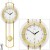 Quarz-Wanduhr, Metallrahmen rotgoldfarben, Mineralglas, weißes Zifferblatt, mit Anzeige für Hygrometer und Thermometer, Strichskala, arabische Zahlen und Zeiger schwarz, Ø ca. 25,5cm -
