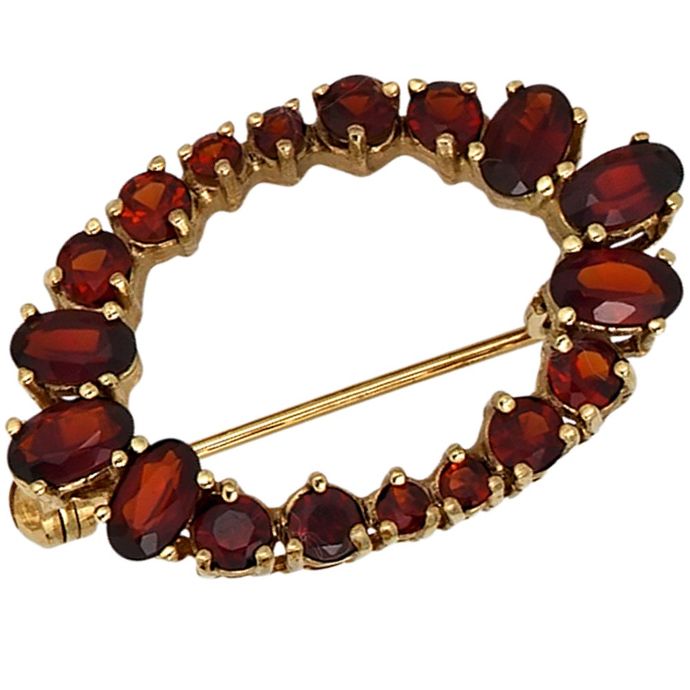Brosche Granat 375 Gelbgold 18 Granate rot Goldbrosche Granatschmuck