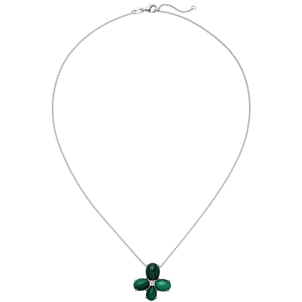Weiterführende Links zu "Collier Halskette 925 Silber 4-Malachit-Cabochons 1 Zirkonia 45cm Kette"