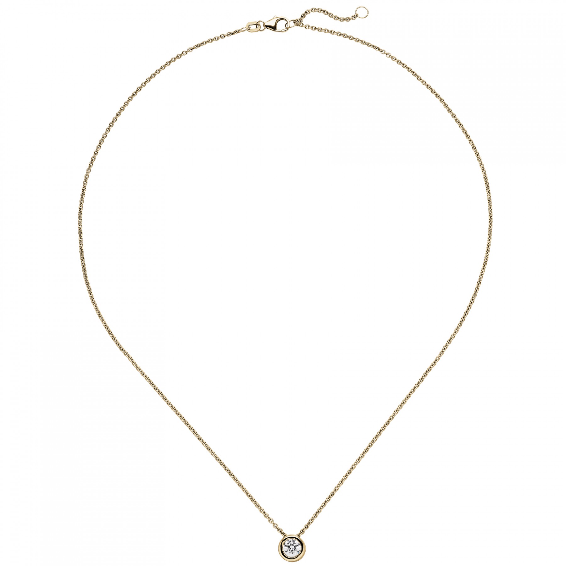 Collier Kette mit Anhänger 585 Gelbgold 1 Diamant Brillant 0,50ct. 45cm