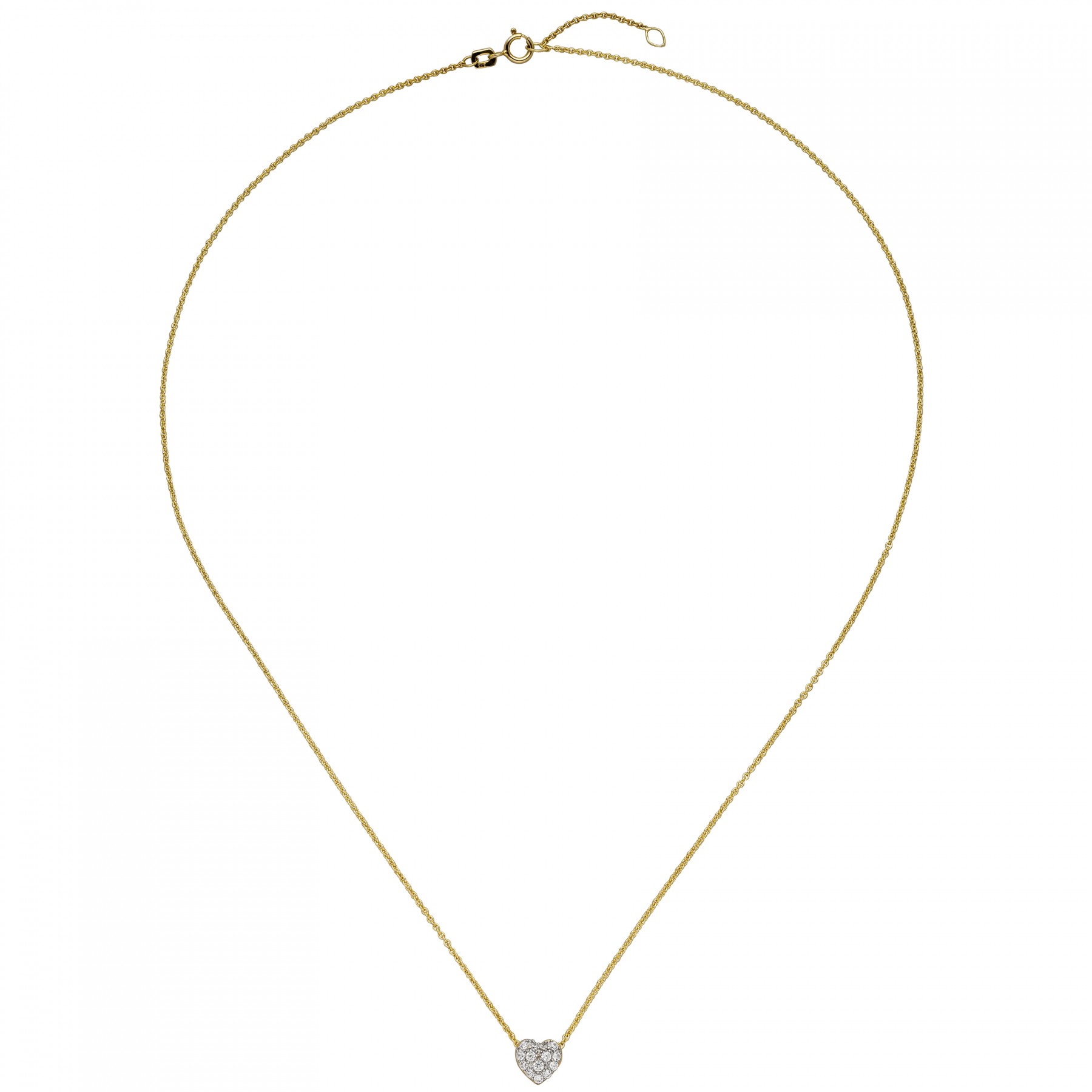 Collier Kette mit Anhänger Herz 375 Gelbgold bicolor 14 Zirkonia 45cm