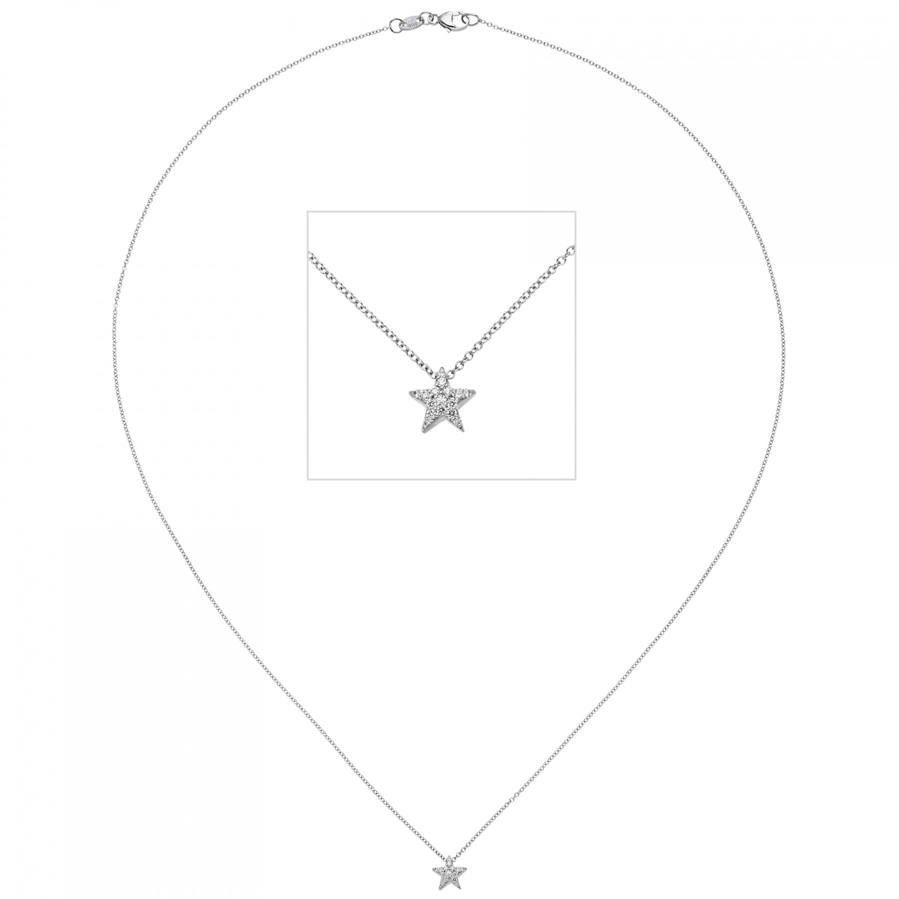Weiterführende Links zu "Collier Kette mit Anhänger Stern 585 Weißgold 16 Diamanten Brillanten 42cm"