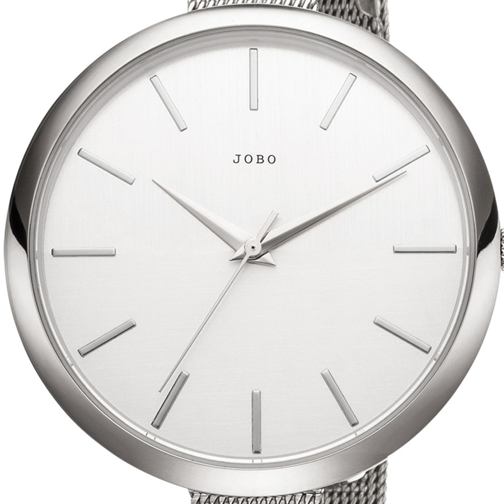 Damenarmbanduhr der Marke JOBO, Quarz-Analog, Gehäuse, Band und Boden Edelstahl, Mineralglas, Strichskala, wassergeschützt bis 3 ATM, mit Klappverschluss, verkürzbar, Bandlänge ca. 20 cm