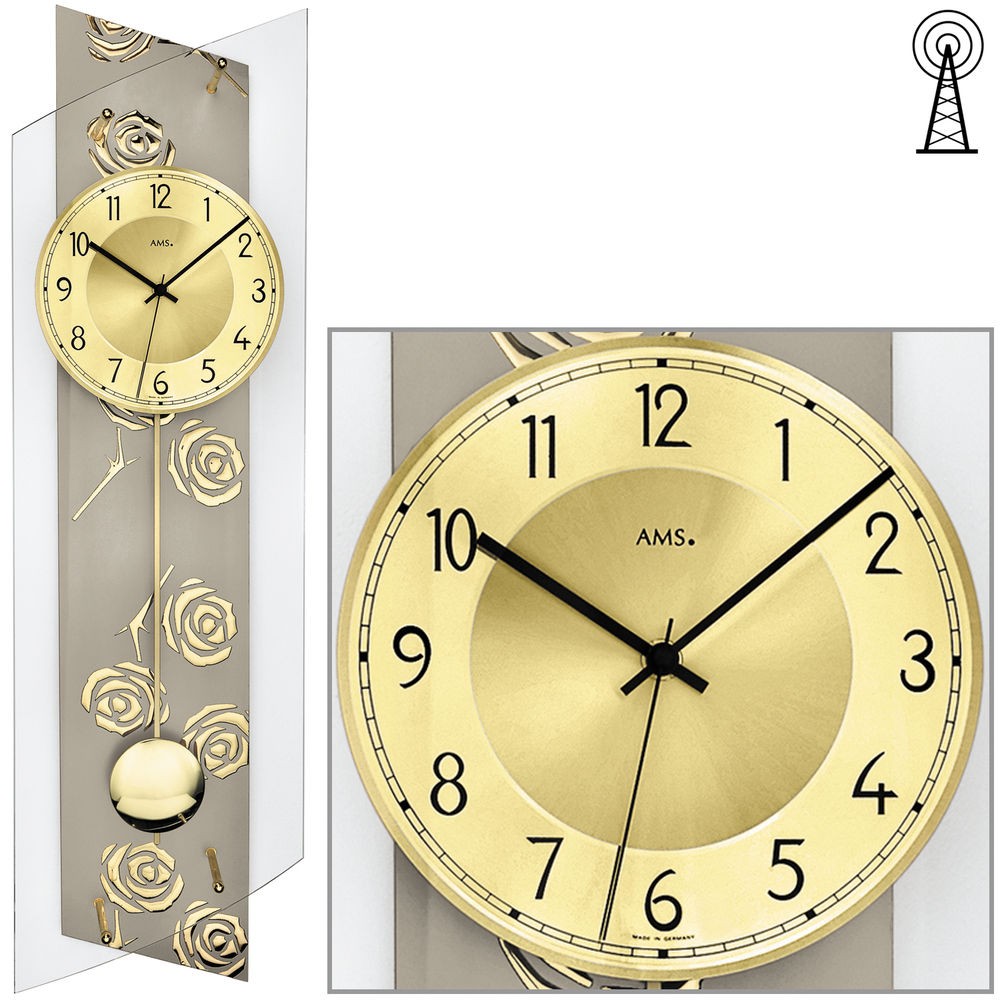 Weiterführende Links zu "Funkwanduhr mit Pendel golden Pendeluhr Glas Rosen Dekor"