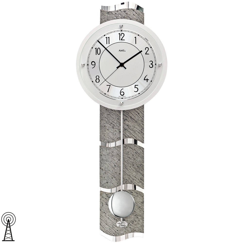 Weiterführende Links zu "Funkwanduhr mit Pendel silbern Pendeluhr mit Stein Optik"