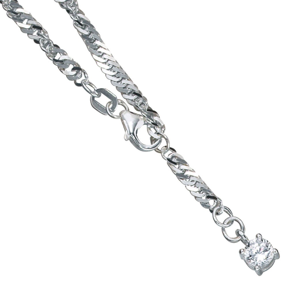 Fußkettchen Fußkette 925 Sterling Silber rhodiniert 1 Zirkonia 25cm Karabiner